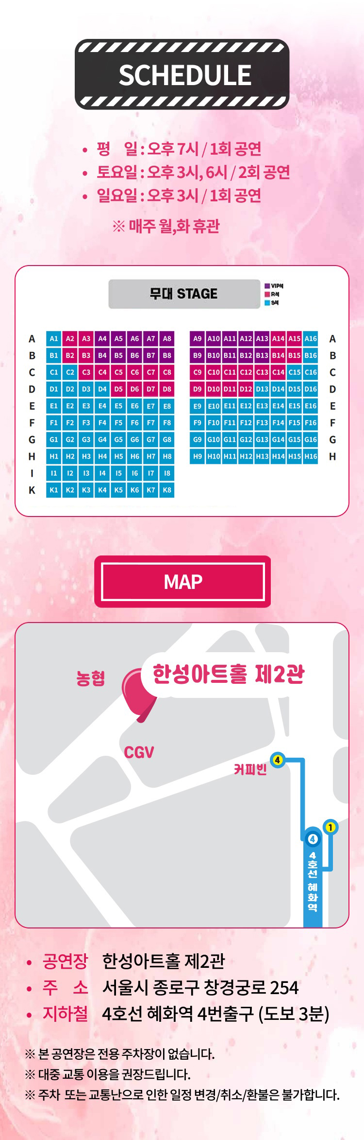 화요일 ~ 금요일(19:00), 토요일(15:00,18:00), 일요일(15:00)
