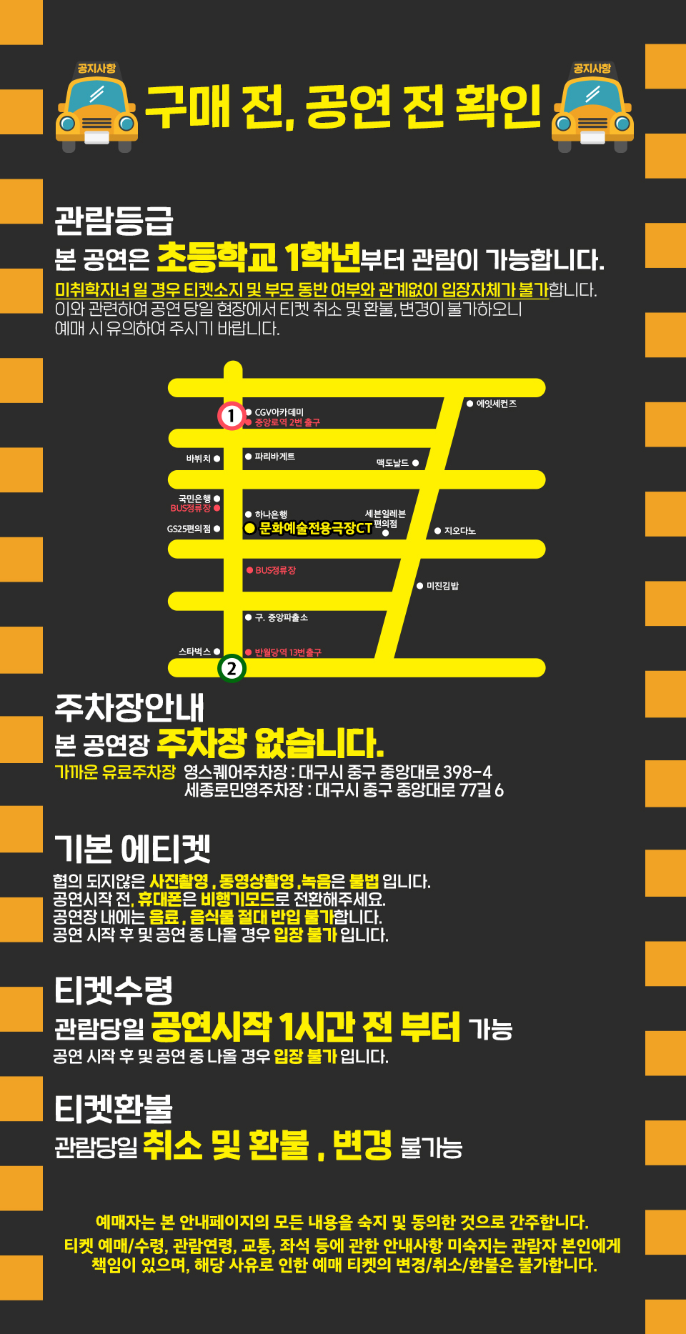 화요일 ~ 금요일(19:30), 토요일(15:00,18:00), 일요일(15:00,18:00), HOL(15:00)