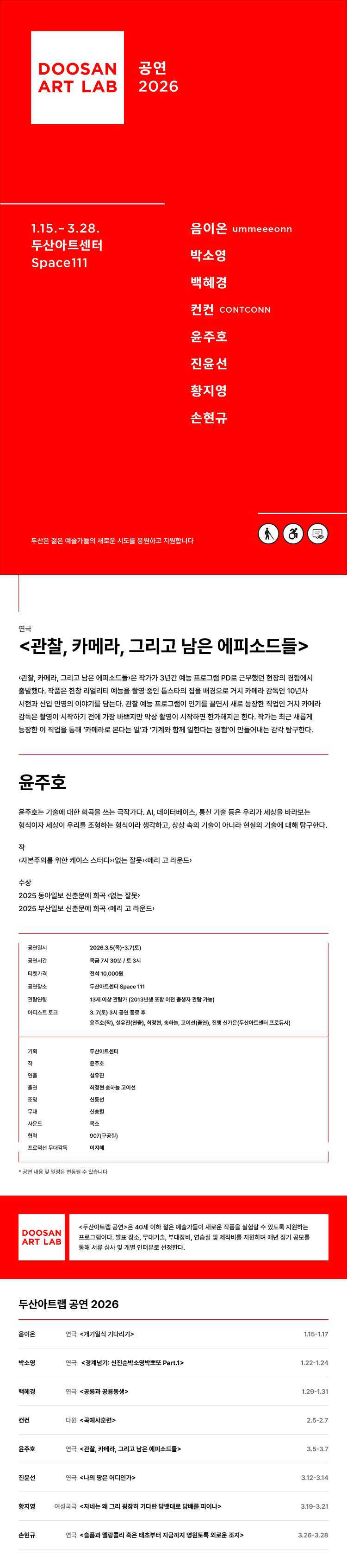 두산아트랩, 관찰, 카메라, 그리고 남은 에피소드들