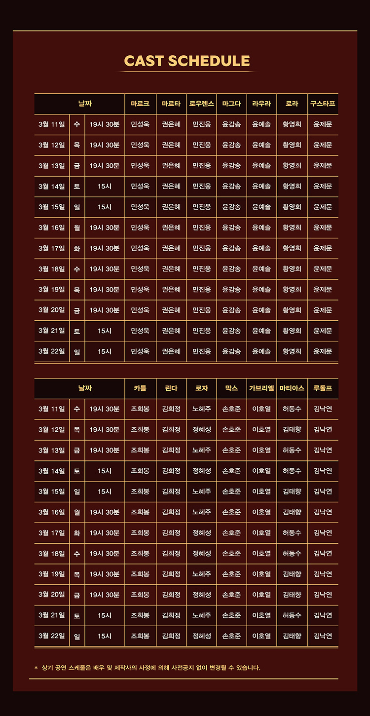 민성욱, 권은혜, 민진웅, 윤감송, 윤예솔, 윤제문, 황영희 등