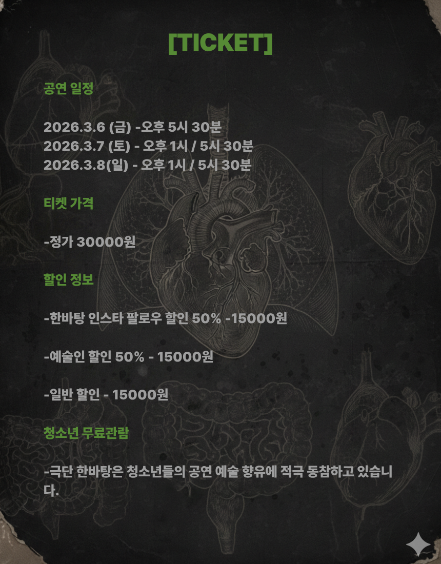 금요일(17:30), 토요일 ~ 일요일(13:00,17:30)
