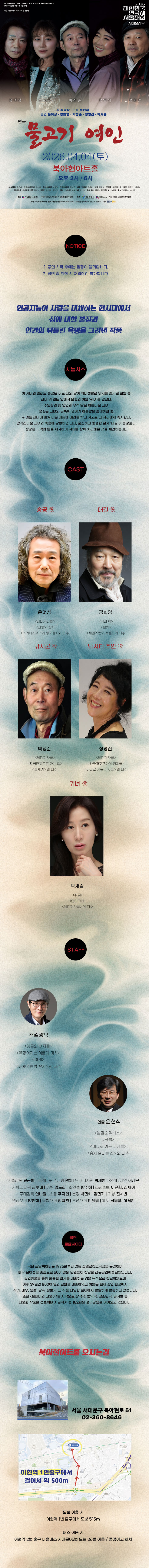 ![대한민국연극제 서울대회, 물고기 여인 [서울 서대문] 소개 이미지 2](http://www.kopis.or.kr/upload/pfmIntroImage/PF_PF286729_202603101022055480.jpg)