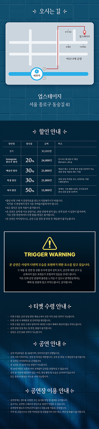 수요일 ~ 금요일(19:30), 토요일(14:00,19:00), 일요일(14:00)