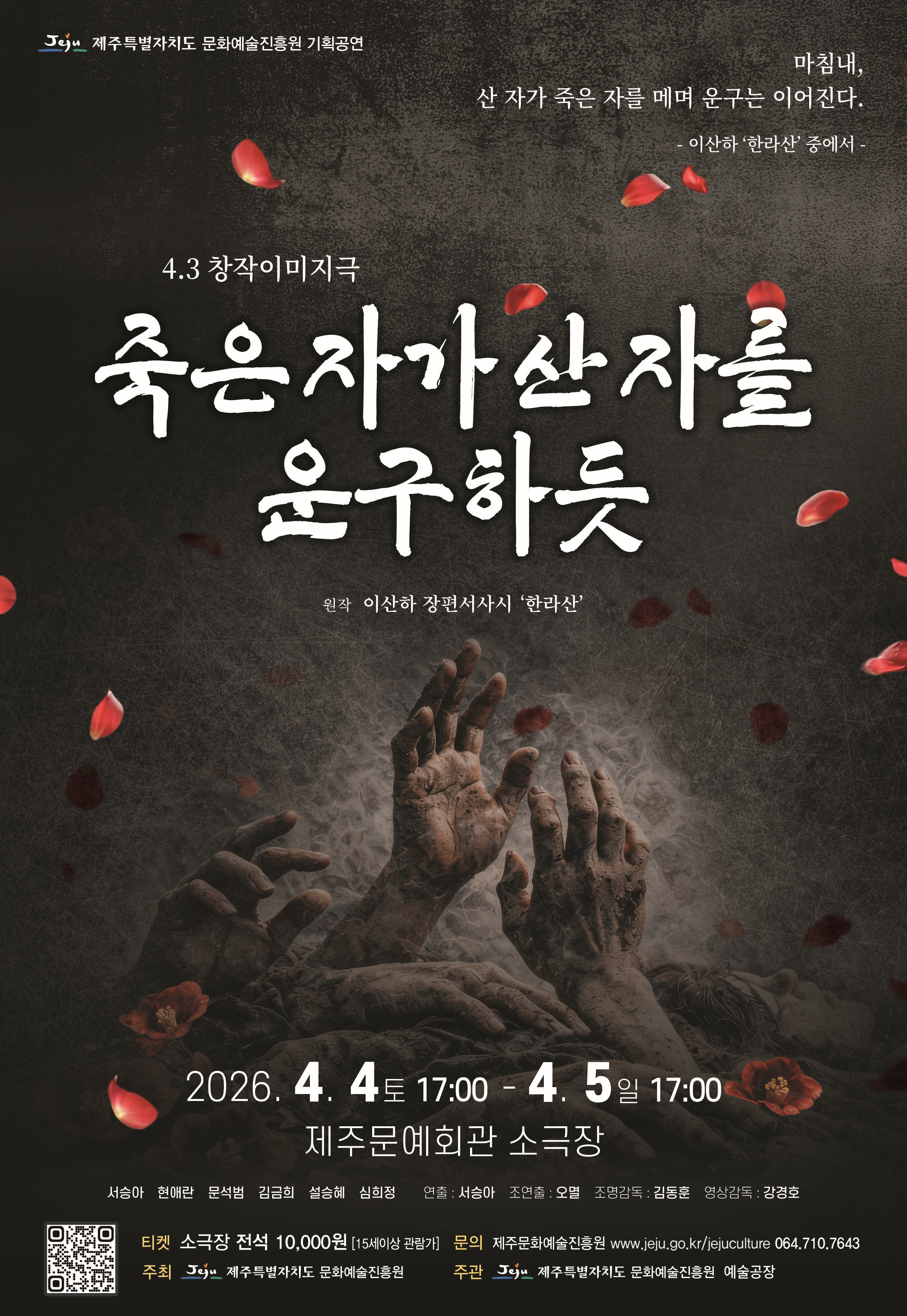 [공연소개] 4.3 78주년을 맞이하여 문화예술진흥원의 특별기획공연으로 4.3을 주제로 한 공연으로 우리의 아픈 기억을 이어나가며 역사의 상처를 극복하고 치유하고자 함.