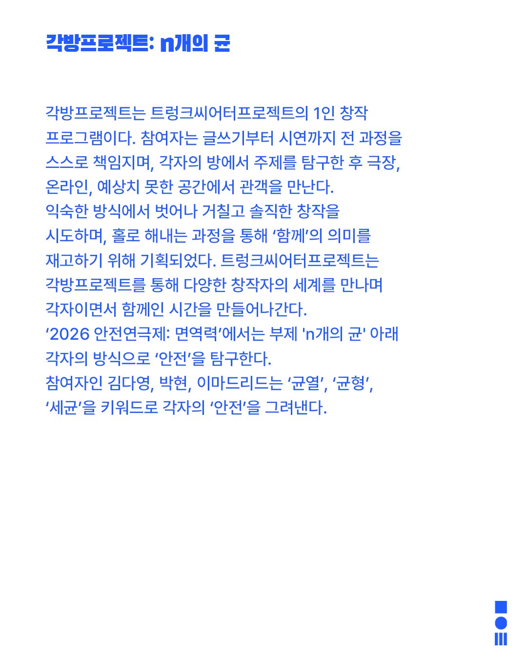 안전 연극제: 면역력, 각방프로젝트: n개의 균