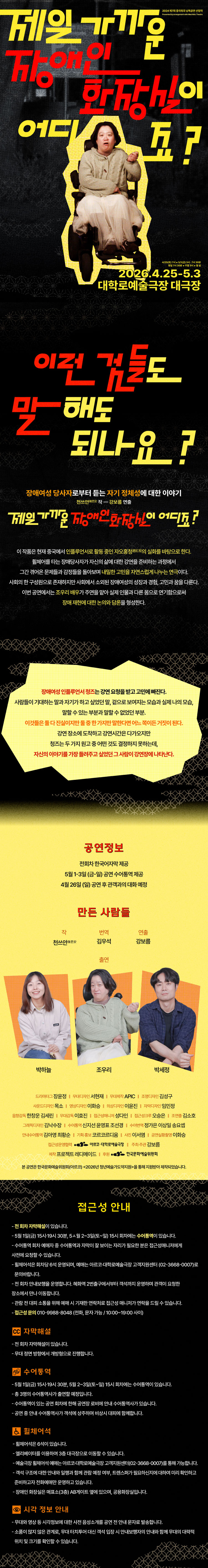 ![제일 가까운 장애인 화장실이 어디죠? [대학로] 소개 이미지 1](http://www.kopis.or.kr/upload/pfmIntroImage/PF_PF288053_202604280336543980.jpg)