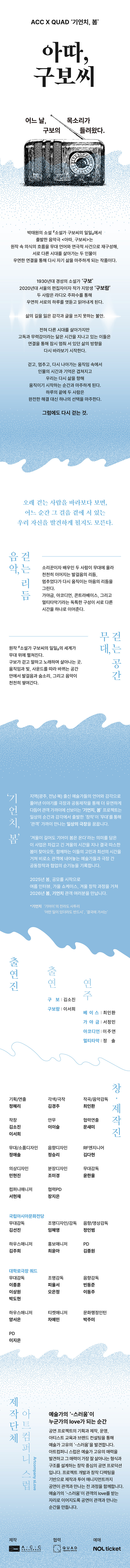 ![ACC x QUAD 기언치, 봄: 아따, 구보씨 [서울] 포스터](http://www.kopis.or.kr/upload/pfmPoster/PF_PF288294_260330_144204.gif)