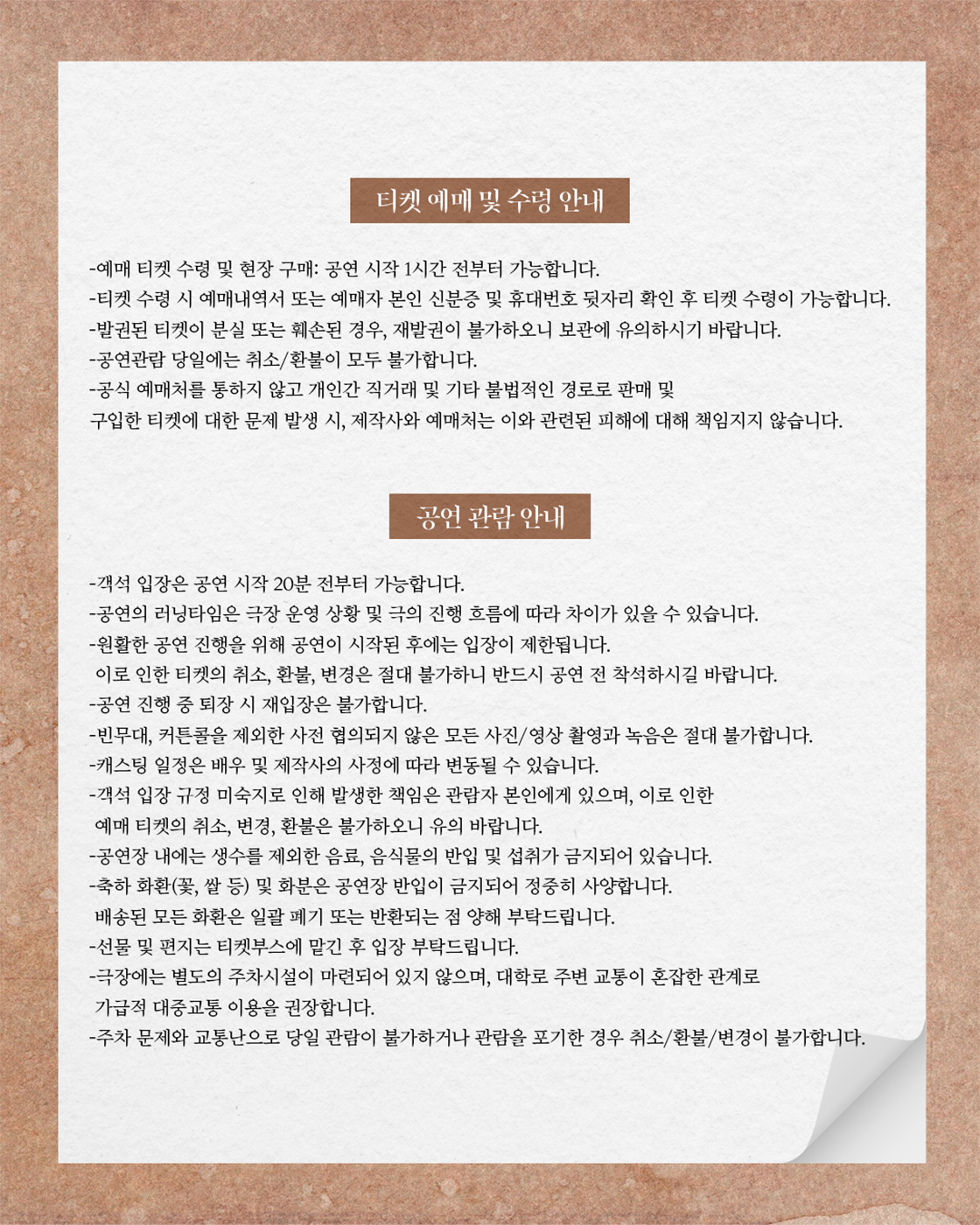 목요일 ~ 금요일(20:00), 토요일(19:00), 일요일(14:00,18:00)