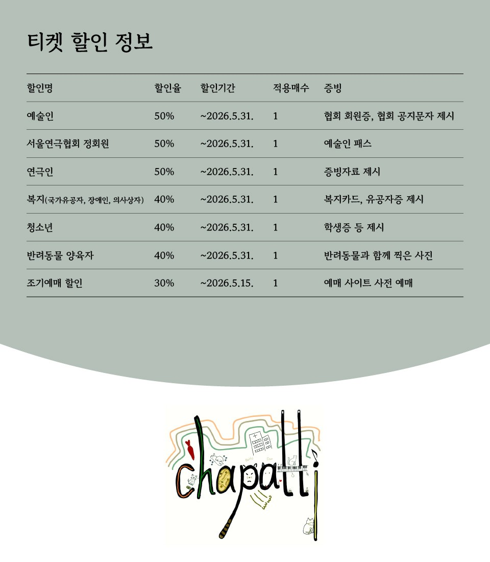 월요일 ~ 금요일(19:30), 토요일 ~ 일요일(15:00), HOL(15:00)