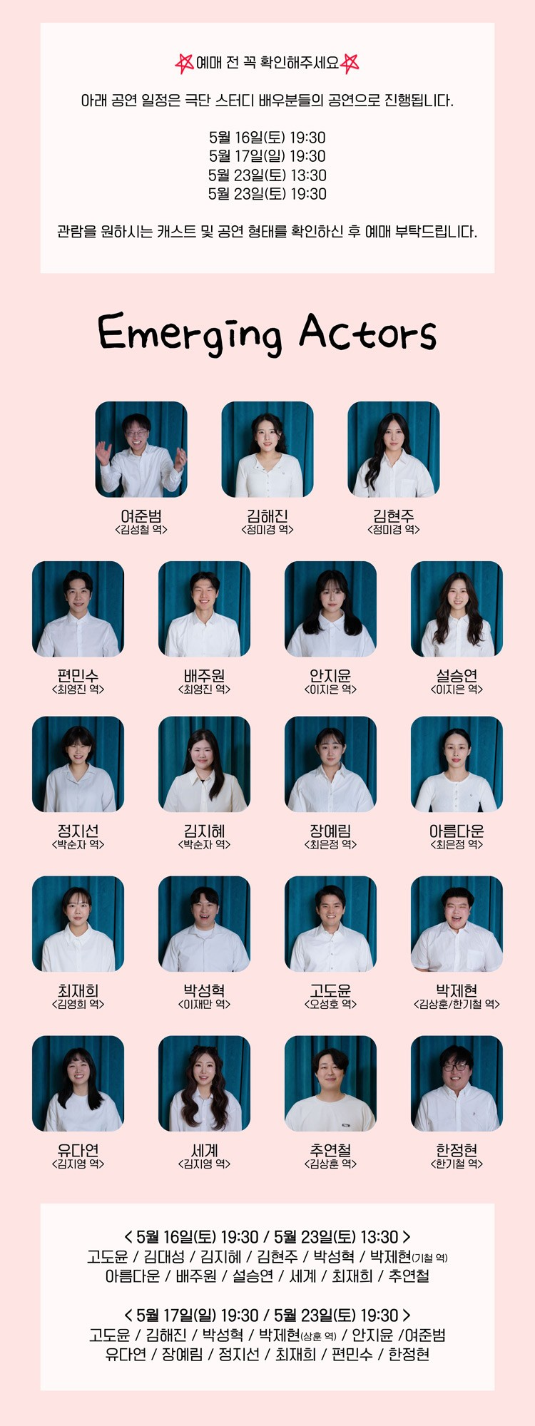 최일선, 한수연, 김대성, 한겨울, 박수정, 정채운, 임정원 등